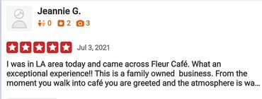 It is our pleasure to serve our customers and make them feel like family. Dad, Chef and Owner Ramiro Cabrera runs the kitchen and integrates his 25 years of experience into every dish. With the help of wife and co-owner Maria Rafaela Cabrera this dream has become a reality. We specially thank friends and family for keeping this dream alive through their work and support at Fleur Café.