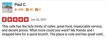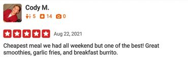 We are proud to offer a big selection of options for everyone. We have anything from breakfast burritos, sandwiches, Chilaquiles, Avocado Toast, Huevos Rancheros to a Pancake Stack. For lunch your options only increase from burgers, salads, kabobs, burritos, bowls, pastas to veggie wraps and garlic fries!